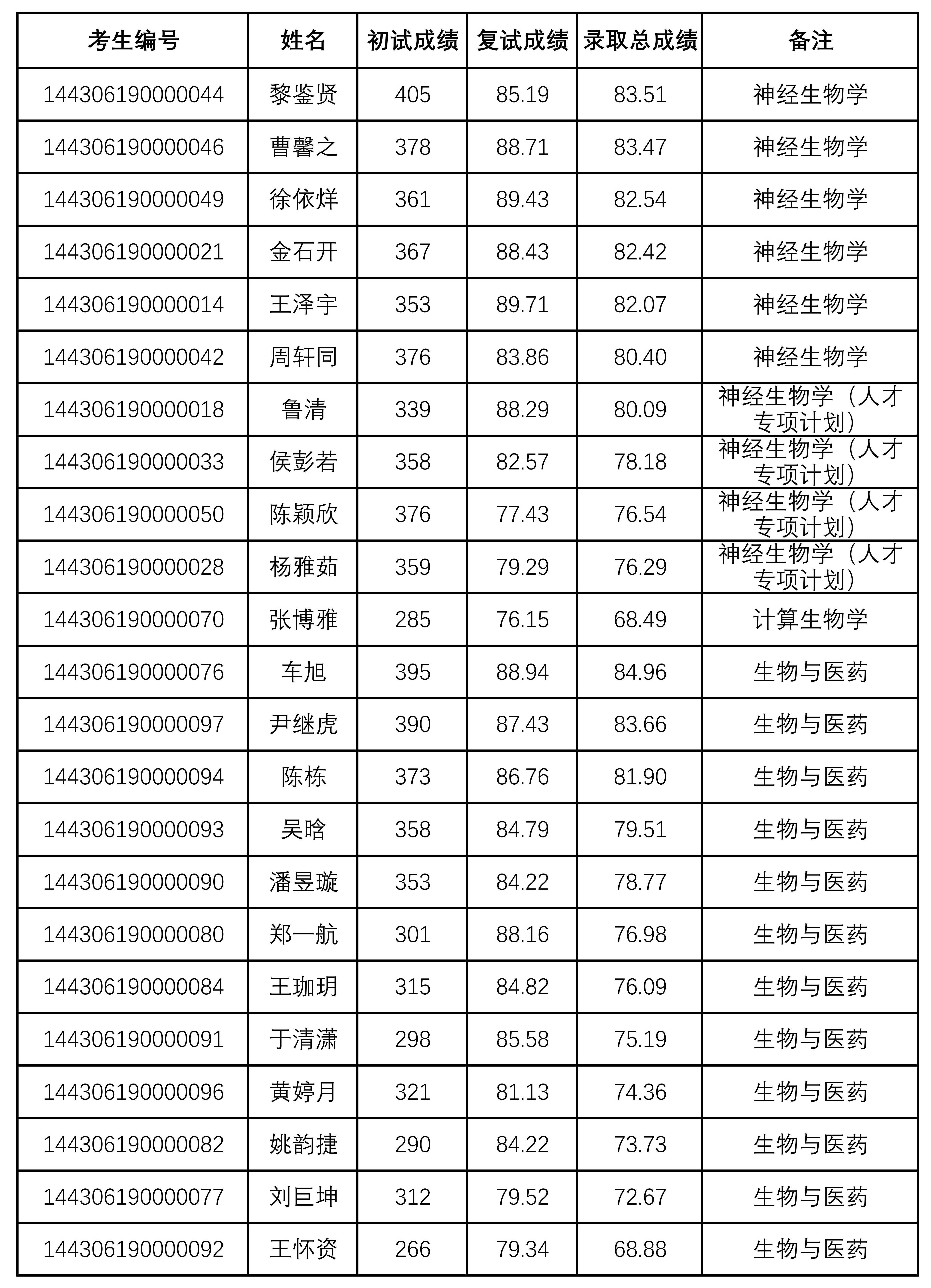 中国科学院脑科学与智能技术卓越创新中心2026年统考生拟录取名单公示