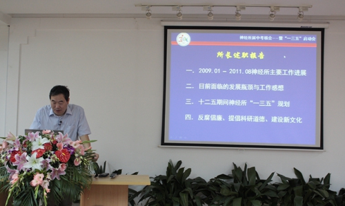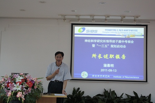 蒲先生代表神经所领导班子,围绕2009.01 – 2011.08神经所主要工作进展、目前面临的发展瓶颈与工作感想、十二五期间神经所“一三五”规划、反腐倡廉、提倡科研道德、建设新文化等四个方面作了述职报告。蒲先生指出,神经所紧紧抓住“十二五”中科院稳定支持的契机,在全所共同努力下,取得了一系列科研创新成果,在管理创新、机制创新等方面进行了卓有成效的工作;领导班子对于如何进一步引导多个研究组联合攻克重要科学问题、合理使用科研经费等都进行了积极有效地探索。蒲先生在会上就神经所的“一三五”发展规划进行了详细的解读,目标是在中国建立国际一流的神经科学基础研究的基地。最后,蒲先生表示要把反腐倡廉作为研究所发展的重要工作来抓,做到集体决策、政务公开,对于学术不端行为决不姑息,建立一种重视科研质量、严谨的、有创新性的科学文化。