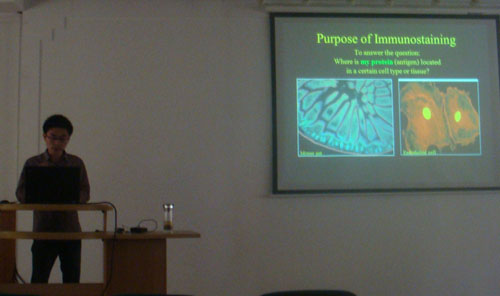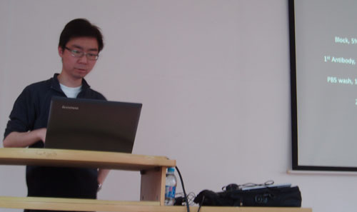 这次课程活动从4月6日开始,持续到5月5日,于每周六下午进行,共举办了4期、24个专题,以讲解技术为主、以领会理论为核心、以实践应用为目的,具体的内容既涵盖了最基本的细胞培养、免疫组化,也包括常用的分子克隆、生化分析、电生理记录、遗传操作和图像采集处理,还详细介绍了各种重要的模式生物如果蝇、斑马鱼、线虫以及灵长类动物的行为学和生理生化分析方法,涉及了分子与细胞神经科学、神经系统发育、神经系统疾病、计算神经科学和认知神经生物学等领域的重要实验技术和方法。每个报告者都精心准备了简洁的PowerPoint,深入浅出、风趣生动、浅显易懂地讲解了各个实验技术的基本原理、相关设备和操作方法,还毫无保留地分享了在实际应用过程中的个人技巧、心得体会和注意事项,讲课的过程中还与大家还进行了热火朝天的讨论和互动交流,表现出了高度的责任感和极大的奉献精神。大家可到http://www.ion.ac.cn/cxwh/zywj.asp下载视频,如果在实验中遇到具体问题,可进一步请教报告者。
