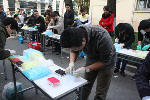本次插枪头比赛,每个课题组选派一男一女参加比赛。 比赛在既紧张又欢快的气氛中进行,比赛过程中,无论你是新进的学生,或是历练多年的大师兄、大师姐,还是发号施令的课题组管家,做的都是一样的动作。本次比赛规则为每人插3盒枪头(1mL、200μL、10μL),每一轮中,最先插完的前四名胜出,通过四轮比赛,胜出的16名人员再进行决赛,分别决出了男女前三名:周子量、谭国鹤、曾学志、聂琰珍、尹延青、邓菡菲。