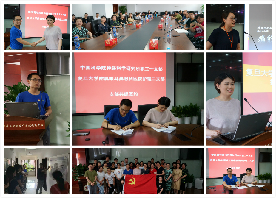6月28日,中科院脑科学与智能技术卓越创新中心(神经科学研究所)职工一支部与复旦大学附属眼耳鼻喉科医院护理二支部在神经所1007会议室举行了支部共建签约活动,两个支部60多名党员参加了此次共建活动。