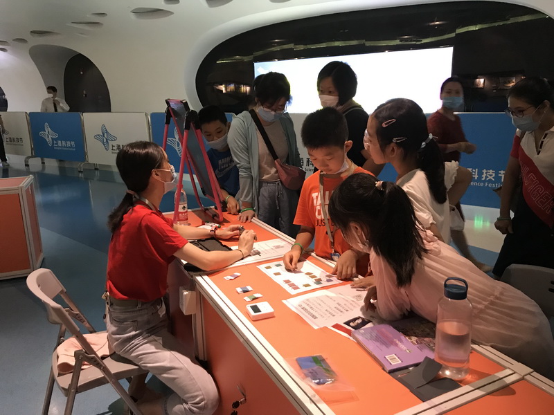 8月23日至29日,中科院脑智卓越中心每天派出八名科普志愿者前往科学之夜专场,在上海中心B2艺术长廊举办七小时《大脑的奥秘》专题科普活动,现场让公众体验脑电对抗、多感觉整合、眼见未必是实、你的眼速够快吗、斑马鱼的肌电记录、僵尸跳舞、发光的肌肉、感觉敏锐度等小实验,亲自动手感受实验的乐趣和科学奇妙现象。上海市民纷纷在线抢票带孩子前往参加该活动,七天共接待了1万多名社会公众,科普志愿者们虽然七小时不停讲解导致嗓子沙哑,但看到小朋友们充满求知欲的眼神和乐在其中的样子时,顿觉幸福感满满。