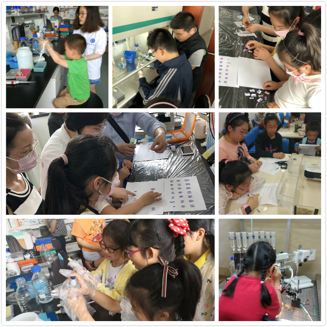 灵长类疾病模型研究组展示了基因编辑的整个流程,在前期分子克隆阶段,每一位小朋友都亲自挑了菌落,许多小朋友很期待第二天的培养结果;在基因编辑阶段,大家观看了小鼠的受精卵从分离到显微注射的全过程,小朋友也在科普志愿者的帮助下操作了显微注射仪,近距离接触了试管小鼠的产生过程;在最后的基因编辑鉴定阶段,大家学习了测序鉴定、根据分子量跑胶鉴定以及染色体核型分析鉴定等多种方法,并在显微镜下观察了人源染色体与鼠源染色体,以及小鼠的雌雄生殖腺。