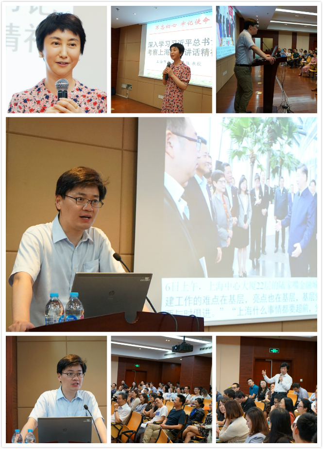 报告会上,李猛为大家介绍了习近平总书记考察上海的行程及沿途讲话,深刻剖析了领导讲话背后蕴含的上海的宏观发展形势与未来发展机遇。他全方位分析了上海历年的经济统计数据、地区间经济协同发展的报告,向大家客观折射出繁华大都市背后曾经的辉煌历史和当今的社会现状、经济发展形势和未来需要努力的方向,让大家准确触摸到上海经济发展的脉搏;他通过引人深思的案例、纪实视频和详实的数据资料,充分调动了大家对这座熟悉的、生活的城市的情感;晦涩难懂的国家宏观调控政策和科技激励举措,在他的详细解读下,大家奋发图强、再创辉煌的拼搏精神被充分激发起来。在随后的互动环节中,李猛用风趣幽默的语言,深入浅出的与大家探讨了“科技创新与成果转化”、“引进来与走出去”、“人才支持力度”等热点话题。