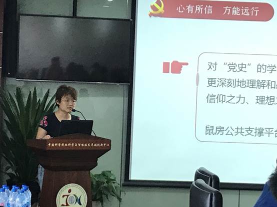 鼠房主管韩玲和大家分享了学习“四史”的心得体会,她认为心有所信,方能行远,提议鼠房公共支撑平台要坚守为科研服务的信仰,把初心化作恒心,把使命化作担当,从根本上回答好为谁做服务、怎样做好服务的问题;作为党员,要有担当精神,不断自我完善和发展,把服务做全、做深、做新,在创新中锻炼成长。