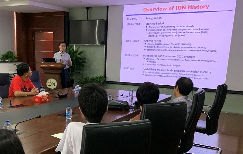 脑智卓越中心所长助理何杰研究员代表中心致欢迎词并向到访客人介绍了中心的发展情况。交流讨论后,代表团还参观了中心斑马鱼平台和光学成像技术平台。