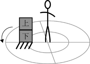 图3 利用飞船内物体的惯性导致的相对运动来判断飞船是否旋转。
