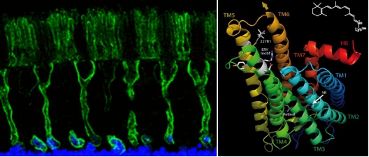 图2 光感受器细胞和视紫红质(引自The Journal of Neuroscience,2013,33(41):16045–16059)