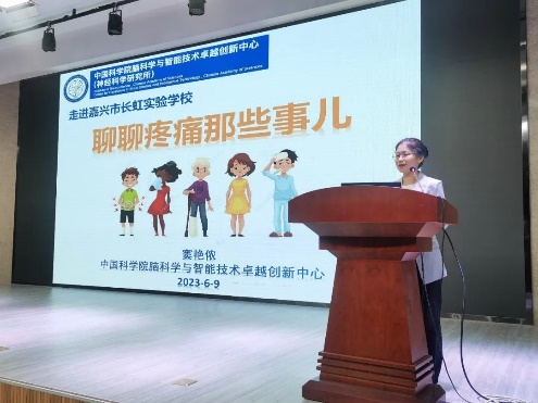 2023年6月9日上午,中国科学院科学家巡讲团成员、青促会会员窦艳侬在嘉兴市、秀洲区科学技术协会的组织安排下,来到王店镇建设中心小学进行《聊聊疼痛那些事》主题科普宣讲。活动由施佳林副校长主持,全体四年级学生参加。同学们对脑科学与智能技术有了全新的认识,激发了孩子们探索身体奥妙的兴趣。
