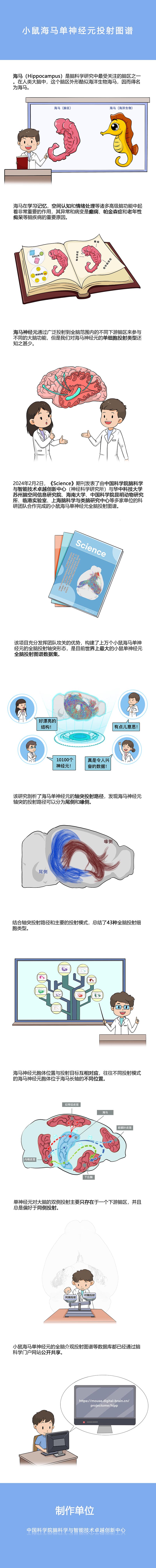 2024年2月2日,《科学》期刊在线发表了题为《Whole-brain spatial organization of hippocampal single-neuron projectomes》的研究论文。该研究解析了海马神经元的空间联接规律,并建立了小鼠海马脑区单神经元的全脑介观投射联接图谱的数据库。该研究成果由中国科学院脑科学与智能技术卓越创新中心(神经科学研究所)领衔,与华中科技大学苏州脑空间信息研究院、海南大学、中国科学院昆明动物研究所、临港实验室、上海脑科学与类脑研究中心等多家单位的科研团队合作完成。