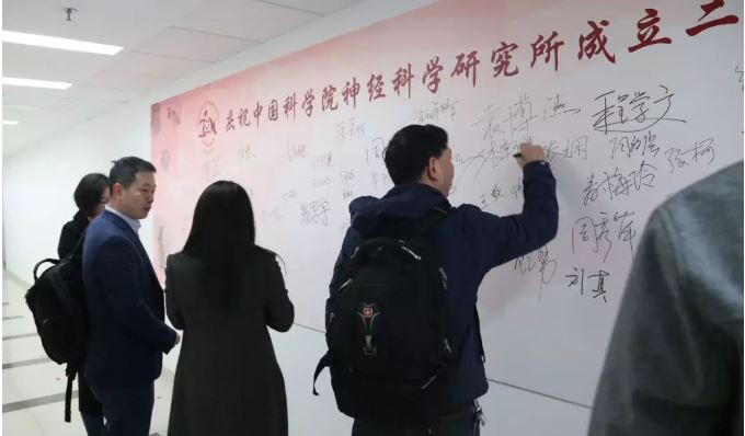 冬的寒意挡不住所友们的满腔热情,他们的笑脸如同窗外的冬日暖阳。庆祝活动尚未开始,所友们就陆续来到了报告厅。大家纷纷在签名墙上写下自己的名字,一个熟悉的名字,一声亲切的呼唤,一段共同的记忆,一种纯粹的情感,瞬间让所友们激动起来。伴随着“昔日重来”的乐曲以及充满回忆的暖场视频,中国科学院神经科学研究所所友会成立大会的帷幕徐徐拉开。