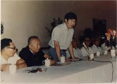 ▲1984年9月蒲慕明教授在清华大学生物系恢复重建大会上讲话