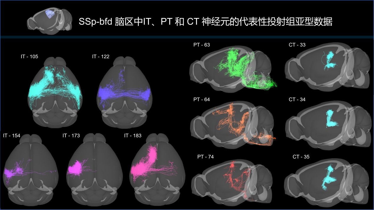 图4 VISp脑区皮层锥体束(pyramidal tract, PT)神经元的投射特征
