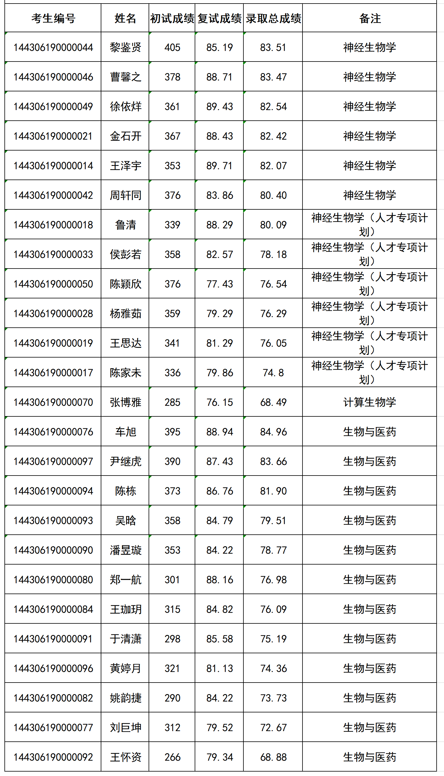 中国科学院脑科学与智能技术卓越创新中心2026年统考生拟录取名单公示
