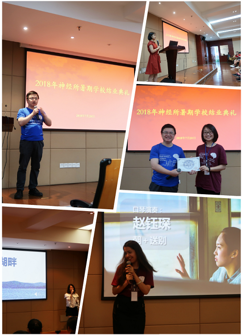 结业典礼上,神经所党委副书记、纪委书记王佐仁为同学们颁发了结业证书,并祝愿同学们都可以拥有一个美好的未来。学员代表们与大家分享了各自的感想和收获,并衷心感谢神经所老师们细心组织了此次暑期学校。在随后的联欢会上,学员们精心准备了丰富多采的节目,展示各自的才艺,为两周来大家一起学习与生活的美好时光划上了美好而难忘的感叹号!