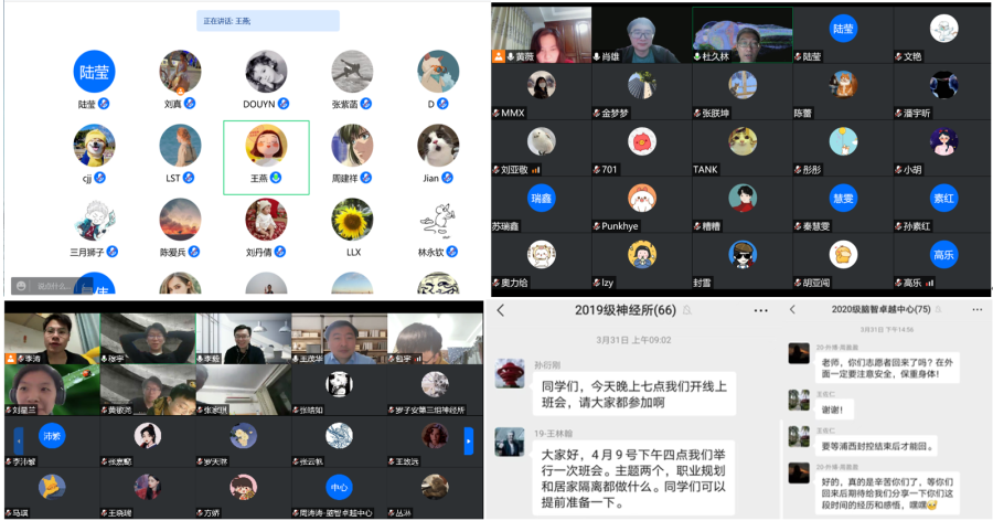 疫情开始后中心迅速启动了研究生年级班主任机制,由5位中心领导分别担任5个年级的班主任;同时,每个年级再配2名青年研究员担任青年导师,共同构建起矩阵化的研究生辅导架构。一场场疫情防控主题班会正在线上进行着。班主任与青年导师们的关爱无缝触达,疏导心理,解决学生实际困难,用真情真意守护学生的身心健康。战疫的日子里有的同学心理上难免会有些波动,在主题班会上,通过公开信息、学习交流、线上思想引导等,将个人发展融入国家和社会发展大势,上好疫情防控这堂思政大课。