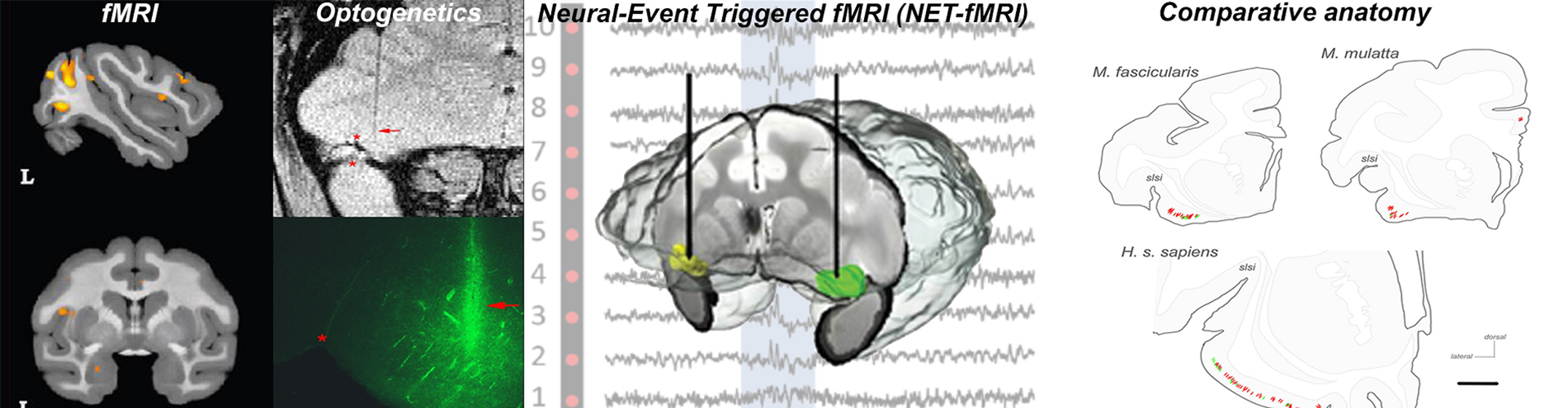 全身动态脑实验室综合了多种非人灵长类动物的先进实验方法,以研究内感受集成系统的神经解剖学方法和功能机制。我们实验室的研究规划拥有一整套综合性的实验方案,以实现我们在记录神经元、功能神经成像和动物行为实验的同时也能精准标靶(化学方法)特定的神经元、大脑环路和身体参数。我们研究组当然也会使用比较/转化等研究路径。